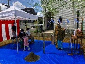 土地を利用させてもらうことの許しを得、工事の無事を祈る儀式として、安全祈願祭と呼ばれたりしています。