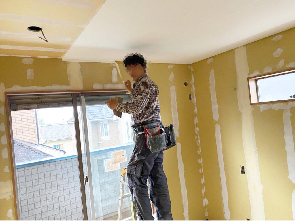 クロスを張る前にクロスの下地としてパテを塗り、壁の凹凸を無くします。